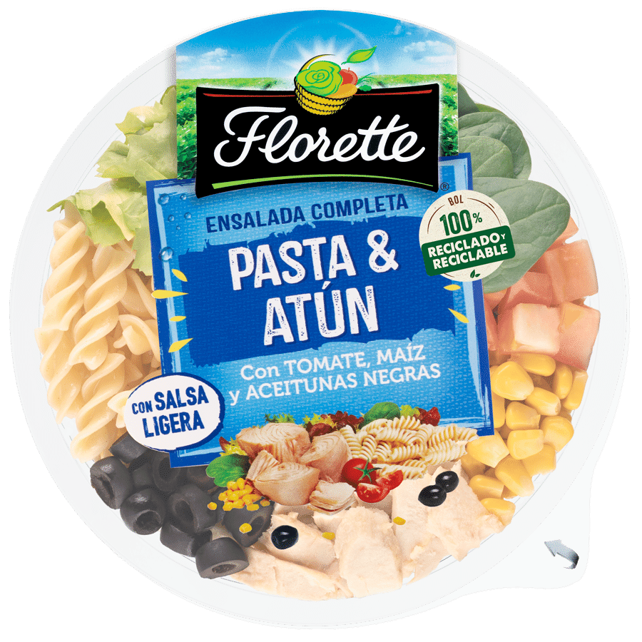 Las nuevas ensaladas, al igual que el resto de productos de Florette se presentan en un bol fabricado en plástico 100% reciclado y además reciclable.
