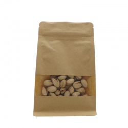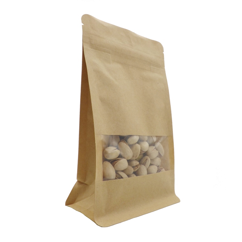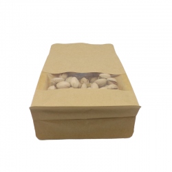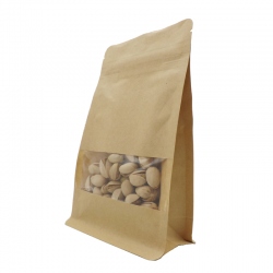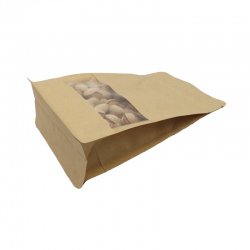 Bolsa papel fondo cuadrado con ventana kraft en color marrón para envasado de todo tipo de productos.