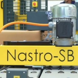 Precintadora de cajas semiautomática Nastro-SB R de ajuste aleatorio para diferentes tamaños de caja y formatos grandes.