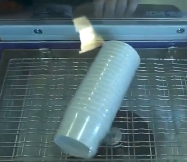 4. Se abre la campana, el producto queda perfectamente retractilado.